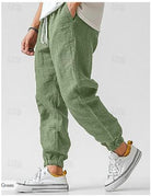 Maxime - Pantalon Jogger en Lin pour Homme. Alliant élégance et décontraction, le pantalon jogger Maxime est conçu en lin léger et respirant pour un confort inégalé. Avec sa coupe ajustée et sa taille élastique, il offre une grande liberté de mouvement tout en garantissant un style moderne et sophistiqué. Idéal pour une tenue casual chic ou pour les journées estivales, ce jogger est un essentiel du vestiaire masculin.